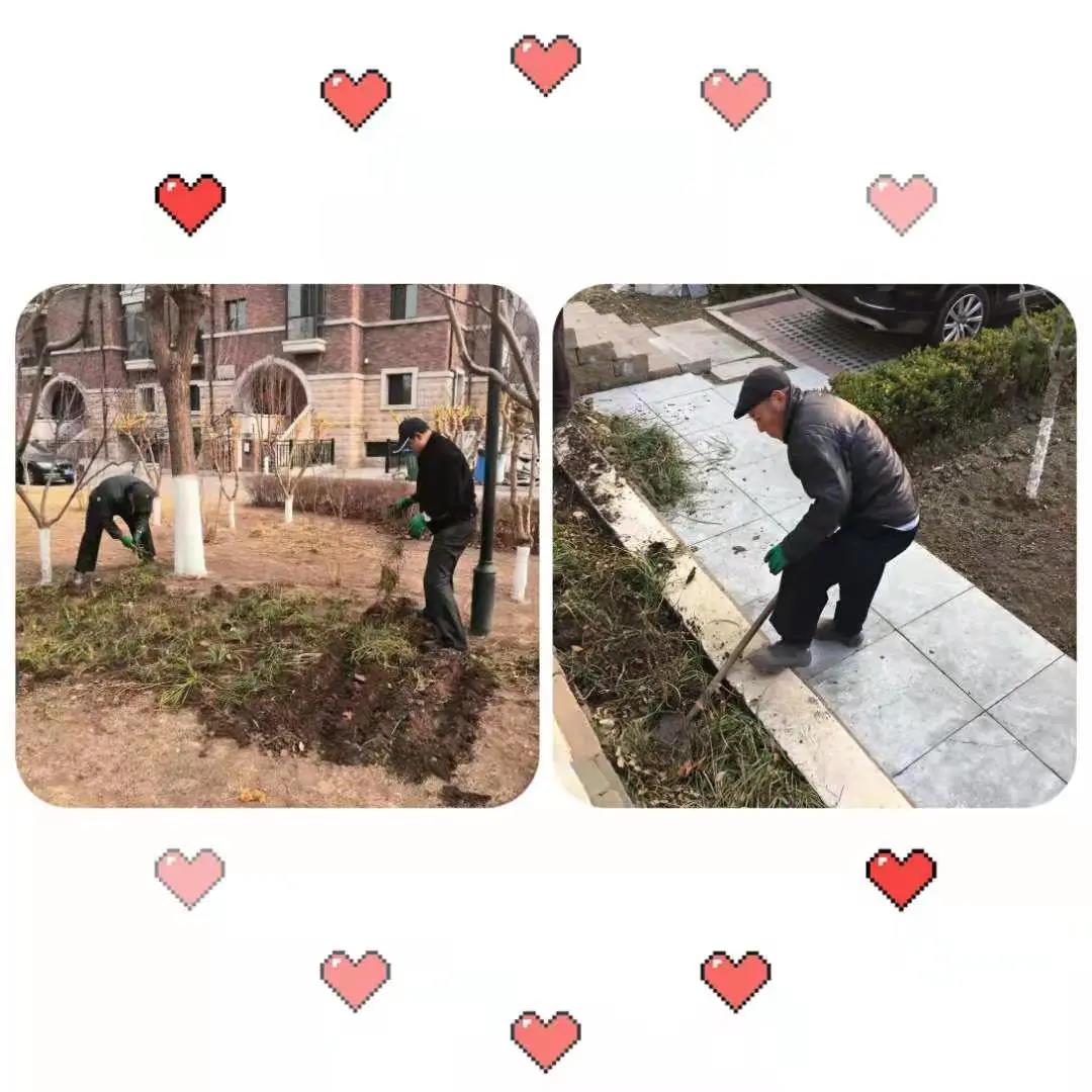 一大早七点左右,维修,维护部组长都到位,心无旁骛,积极的清理杂物和去年枯黄的杂草,劈劈拉拉的声音成为了干活的主旋律,没有一个人喊累,都在想怎么把草清的更干净,怎么样有更好的栽种效果,让业主更满意。